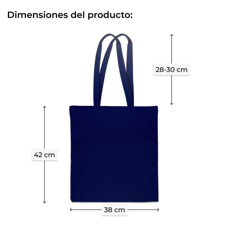 Bolsa grande de algodón de 38 x 42 cm con un peso de 140 g en un moderno color azul marino. Esta bolsa de algodón ecológica tiene asas largas. El precio es por 1 unidad, las bolsas las empacamos individualmente.
