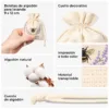 - como bolsas de algodón para lavanda seca, rellenadas con flores de lavanda para colocar en armarios, cajones o cómodas,