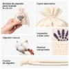 - como bolsas algodón para cosmética natural: mini jabones, bombas de baño o pequeños frascos de aceite de lavanda en su propio envase,