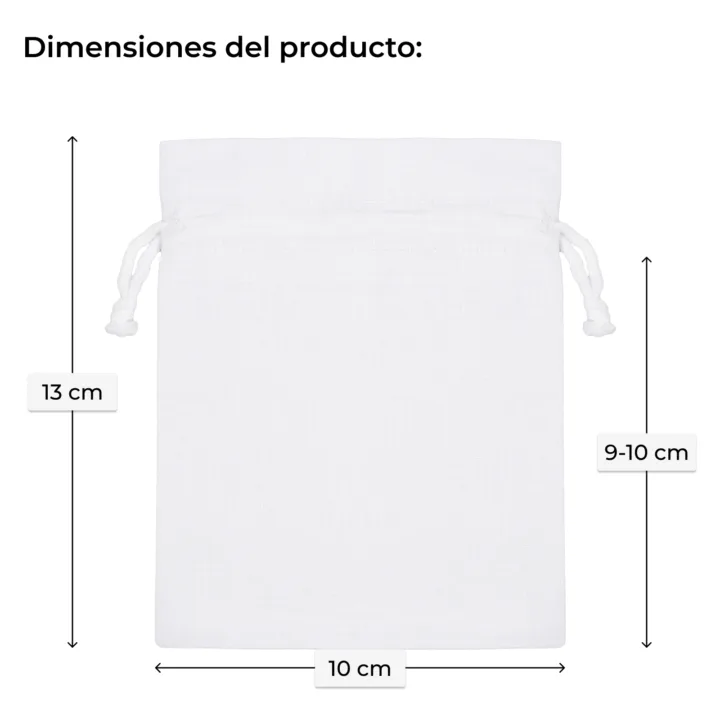 Set de 10 unidades de originales bolsas de material tipo algodón, dimensiones 10 x 13 cm, cuyo color blanco quedará perfecto para casi cualquier situación. El set que ofrecemos es universal, porque permite utilizar las bolsas de muchas maneras, dependiendo de la situación.