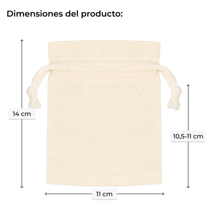 Saquitos pequeños de aplicación universal hechos de elegante algodón en color natural, tamaño 11 x 14 cm. El paquete presentado contiene 10 unidades, por esto, una sola compra de estas prácticas bolsitas te servirá para mucho tiempo.