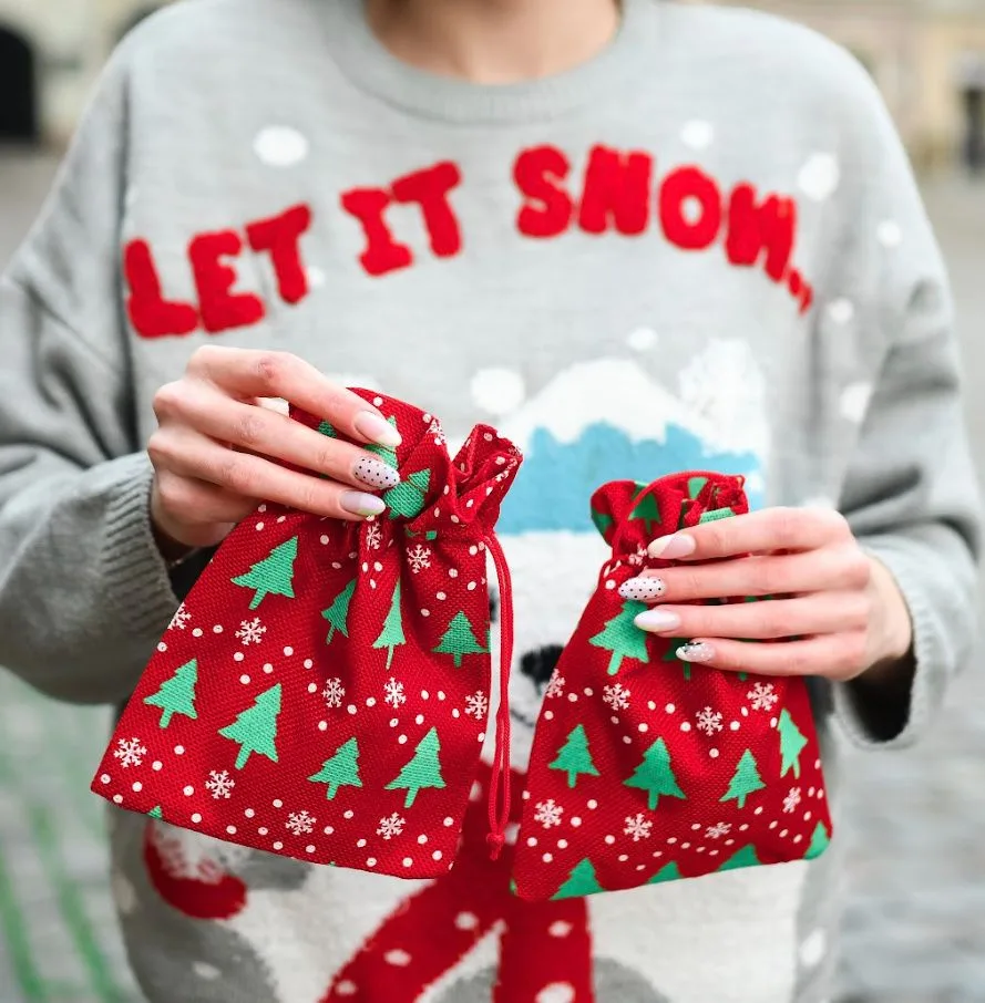 3 uds. Sacos de yute 22 x 30 cm - rojo / árbol de Navidad