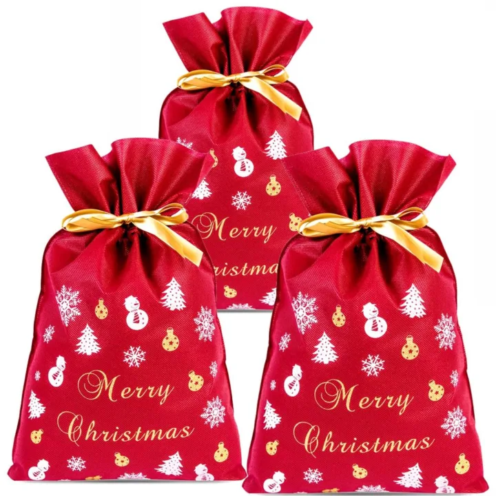 3 uds. sacos non woven navideñas con estampado 20 x 30 cm burdeos - perfectos para regalos y detalles festivos