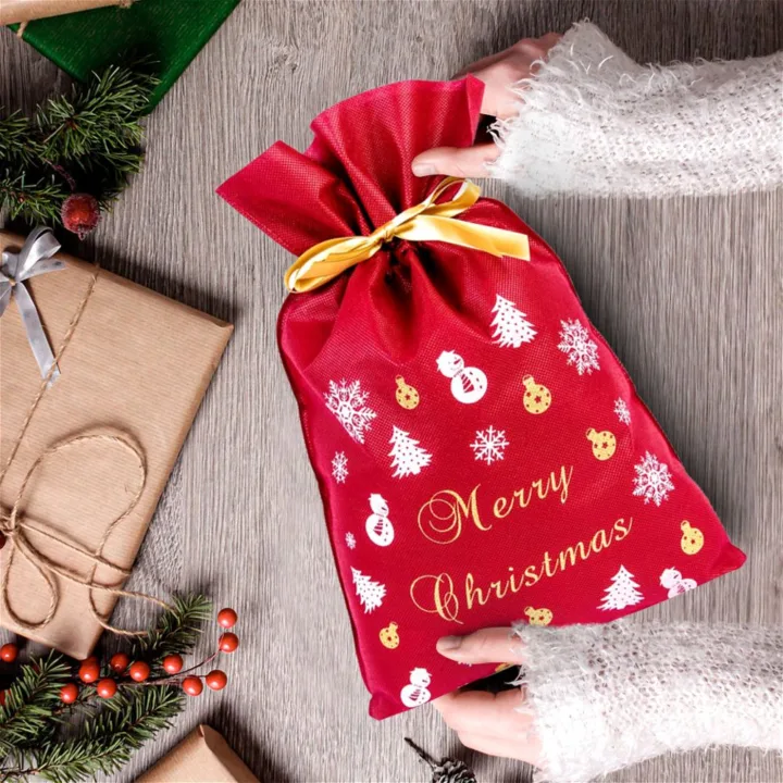 3 uds. sacos non woven con estampado navideño 30 x 45 cm burdeos - envoltorio elegante para regalos de Navidad