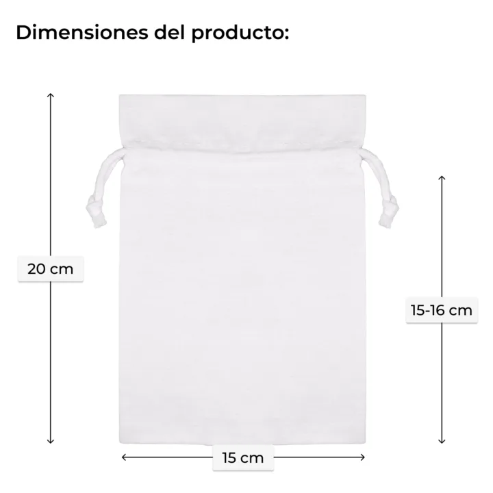 Cada paquete incluye 5 bolsitas de algodón en color blanco.