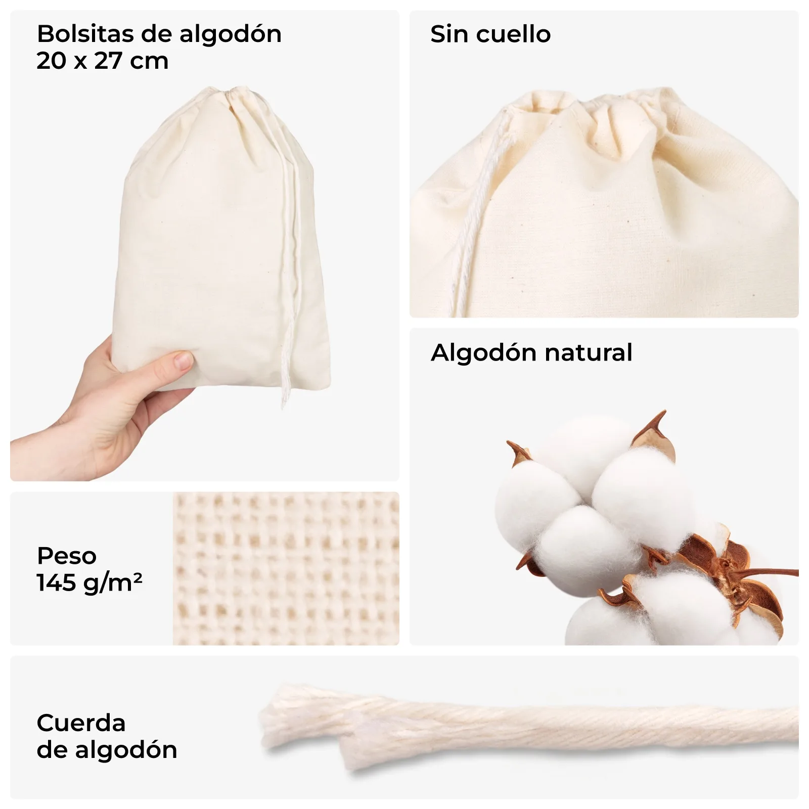 - Sostenibles - hechas con algodón 100% natural,