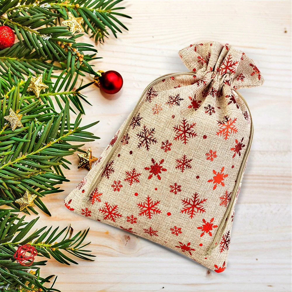 5 uds. Bolsas de yute 15 x 20 cm - natural / estrellas