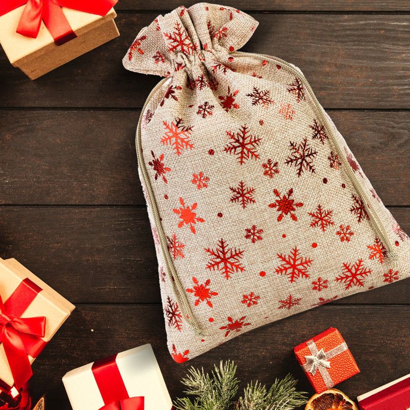 5 uds. Bolsas de yute 18 x 24 cm - natural / estrellas