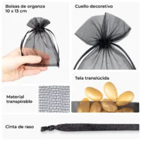 25 uds. Bolsas de organza 7 x 9 cm - negro