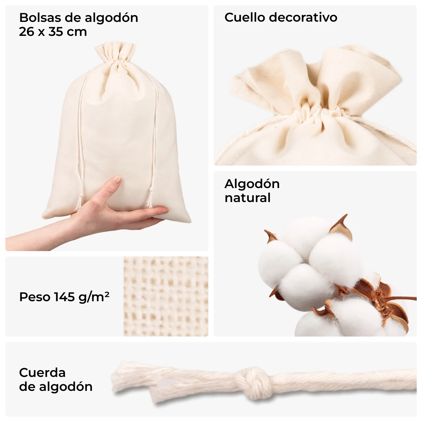 Saco de algodón 26 x 35 cm natural - Pack de 3 - 100% algodón
