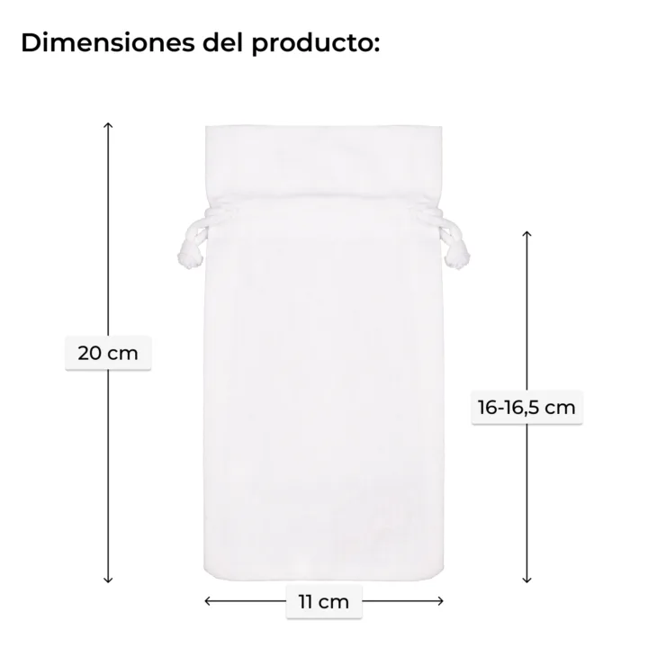 Saquitos pequeños de aplicación universal hechos de elegante algodón en color blanco, tamaño 11 x 20 cm. El paquete presentado contiene 10 unidades, por esto, una sola compra de estas prácticas bolsitas te servirá para mucho tiempo.