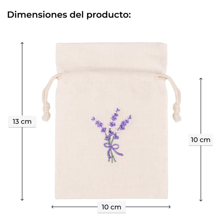 Las mejores son las bolsas de lavanda de algodón 10x13 cm con bordado - transpirables, bonitas y listas para usar con flores secas.