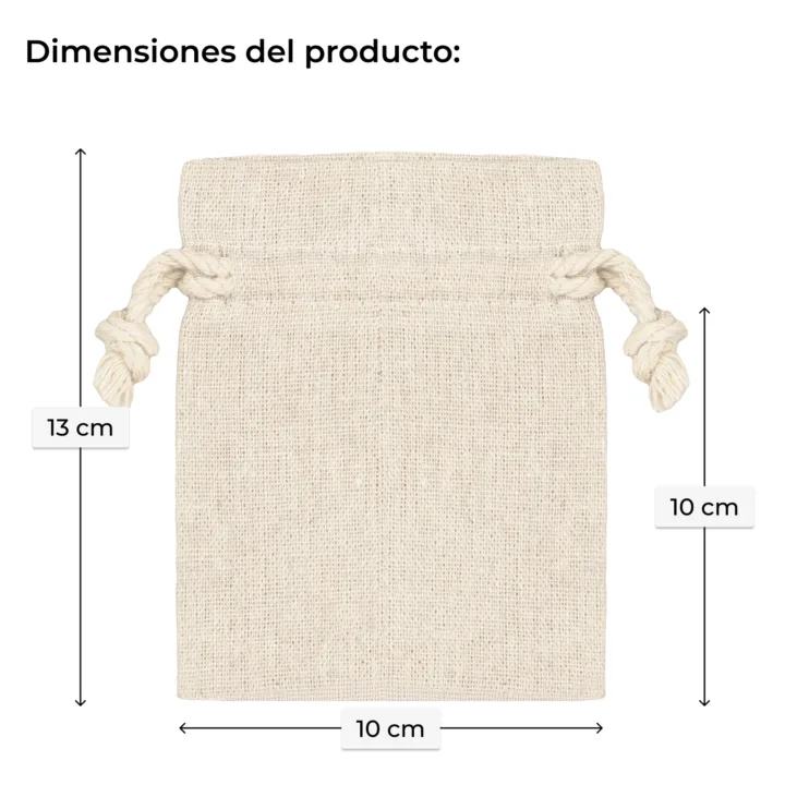 Descubre las duraderas y prácticas bolsas de tela en el color del lino natural. Las bolsas pequeñas que se presentan aquí miden 10 x 13 cm. El paquete incluye un set de 10 unidades de saquitos universales.