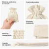 Descubre las duraderas y prácticas bolsas de tela en el color del lino natural. Las bolsas pequeñas que se presentan aquí miden 11 x 14 cm. El paquete incluye un set de 10 unidades de saquitos universales.