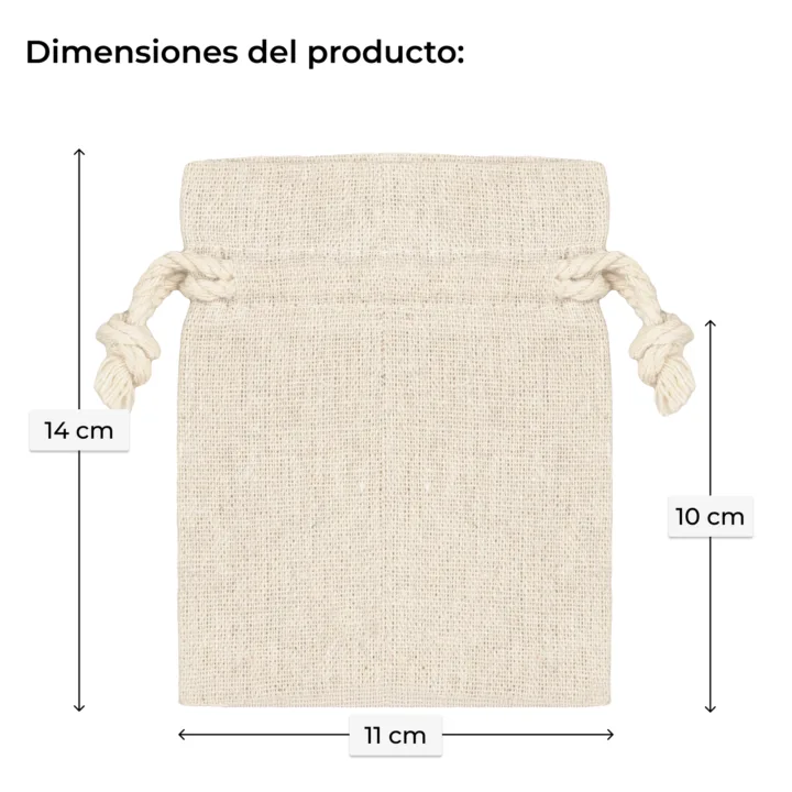 Descubre las duraderas y prácticas bolsas de tela en el color del lino natural. Las bolsas pequeñas que se presentan aquí miden 11 x 14 cm. El paquete incluye un set de 10 unidades de saquitos universales.