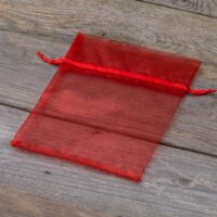 Un conjunto universal de 25 bolsas medianas de organza en el color rojo de dimensión de 12 x 15 cm.
