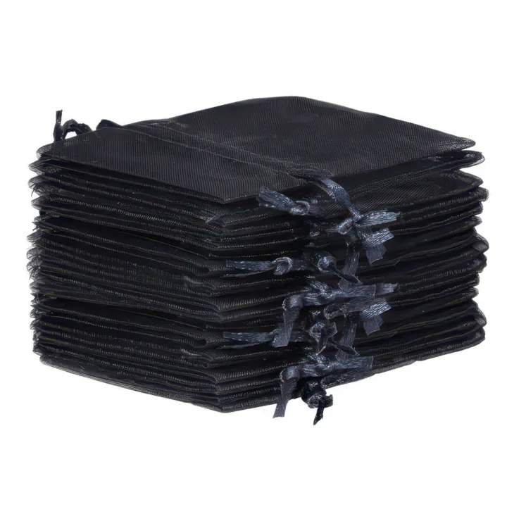 Conjunto de 25 unidades de bolsas de organza en el color negro de un amplio uso y muy práctico.