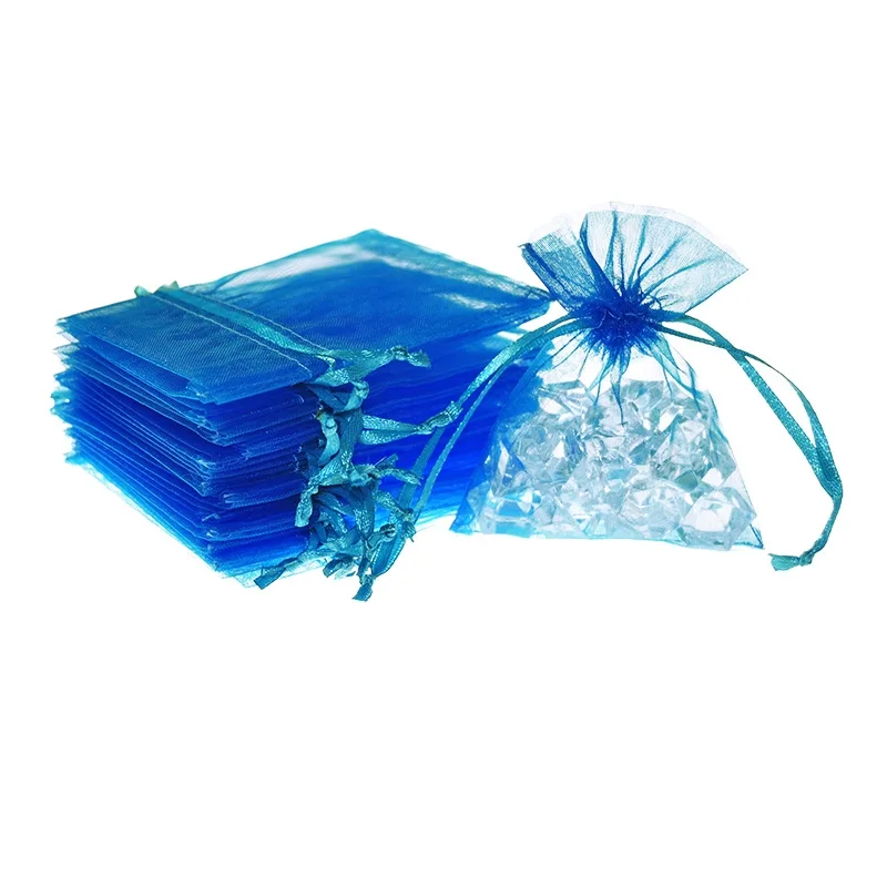 Conjunto práctico de pequeñas bolsas de organza en el color turquesa. Dimensión de cada bolsa es de 8 x 10 cm, y un conjunto completo consta de 25 unidades.Tal cantidad permite almacenar cualquier colección.