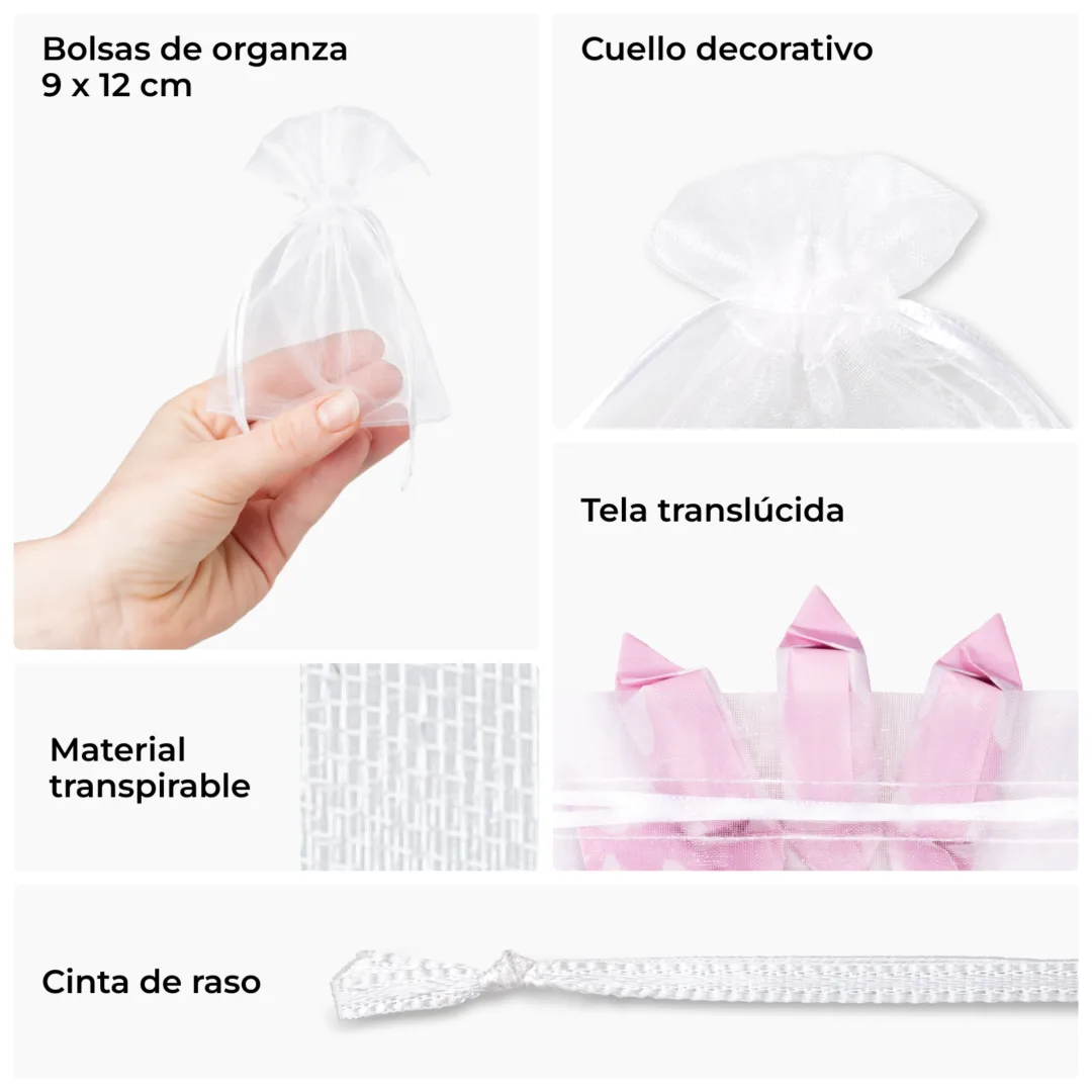 Conjunto de 25 unidades de bolsas de organza en el color blanco de un amplio uso y muy práctico.