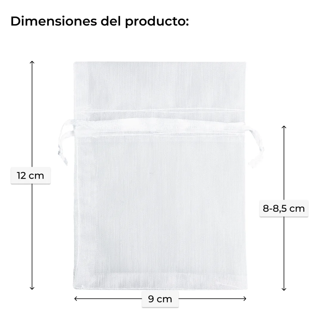 Dimensión de 9 x 12 cm se adapta perfectamente a la hora de guardar productos pequeños, tales como artículos de oficina, regalitos publicitarios, estatuas de recuerdo y muchos productos originales más: el estilo versátil de organza se ajusta, prácticamente, a cualquier objeto.