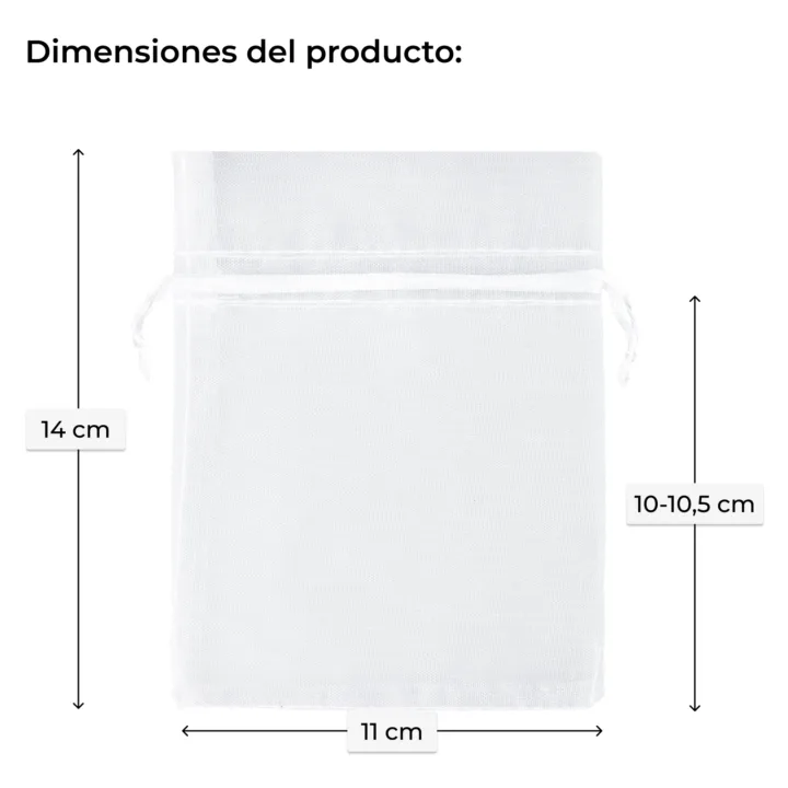 Dimensión de 11 x 14 cm se adapta perfectamente a la hora de guardar productos pequeños, tales como artículos de oficina, regalitos publicitarios, estatuas de recuerdo y muchos productos originales más: el estilo versátil de organza se ajusta, prácticamente, a cualquier objeto.