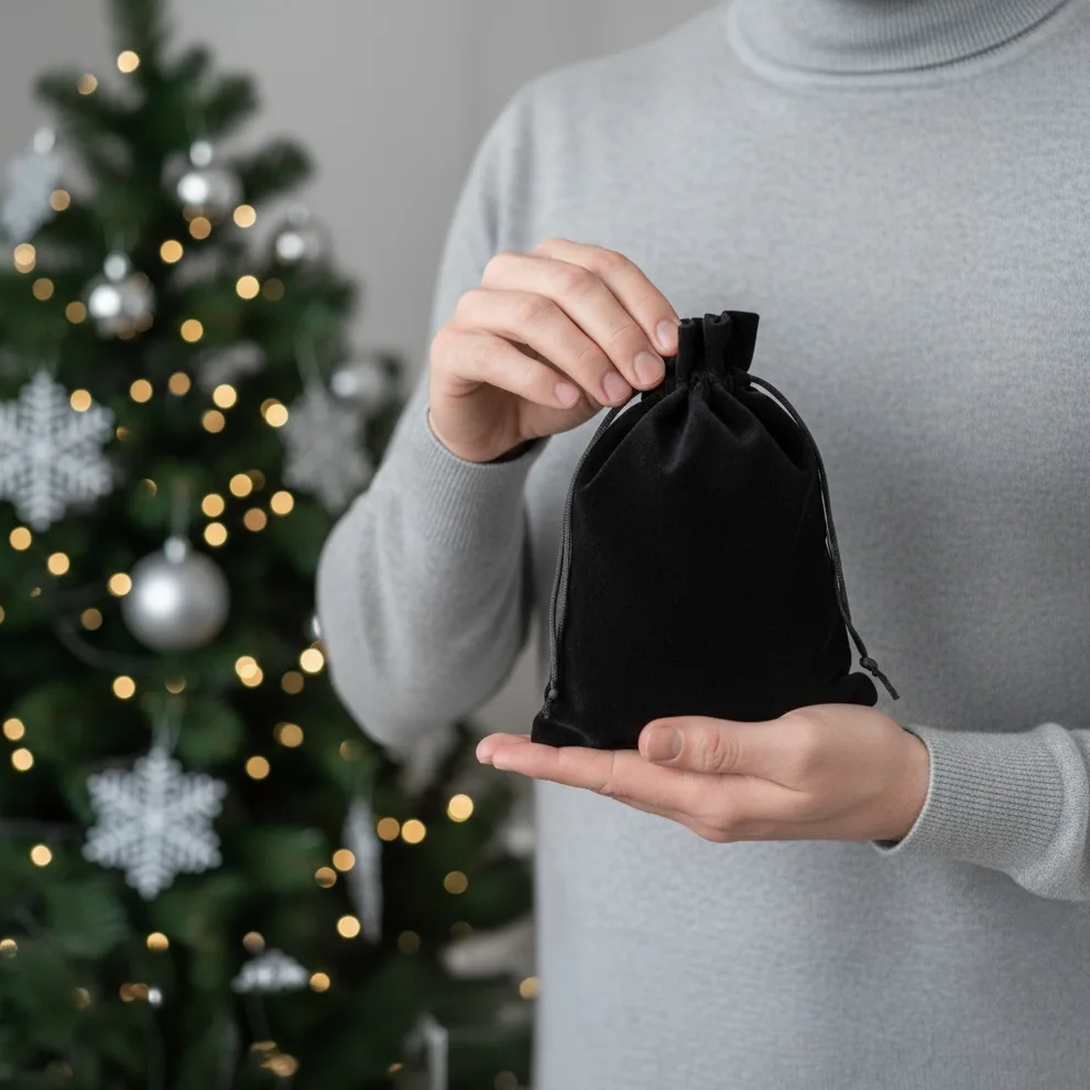 ¿Estás buscando un embalaje elegante para pequeños regalos? Te recomendamos bolsos de terciopelo negro que gustarán tanto a mujeres como a hombres. El terciopelo negro es un material universal e intemporal, y como el bolso de terciopelo se adapta a múltiples usos, estás eligiendo un embalaje que permanecerá con el destinatario durante mucho tiempo.