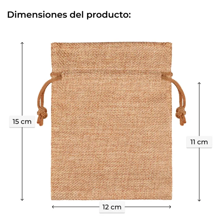 El tejido con textura de yute - en este caso sintético - es un material que resulta excelente para guardar diversos tipos de objetos. Por lo tanto, en la oferta de Saketos no podían faltar los saquitos de material estilizado como yute en color marrón claro natural, que encuentran una aplicación versátil en la vida cotidiana de nuestros clientes.