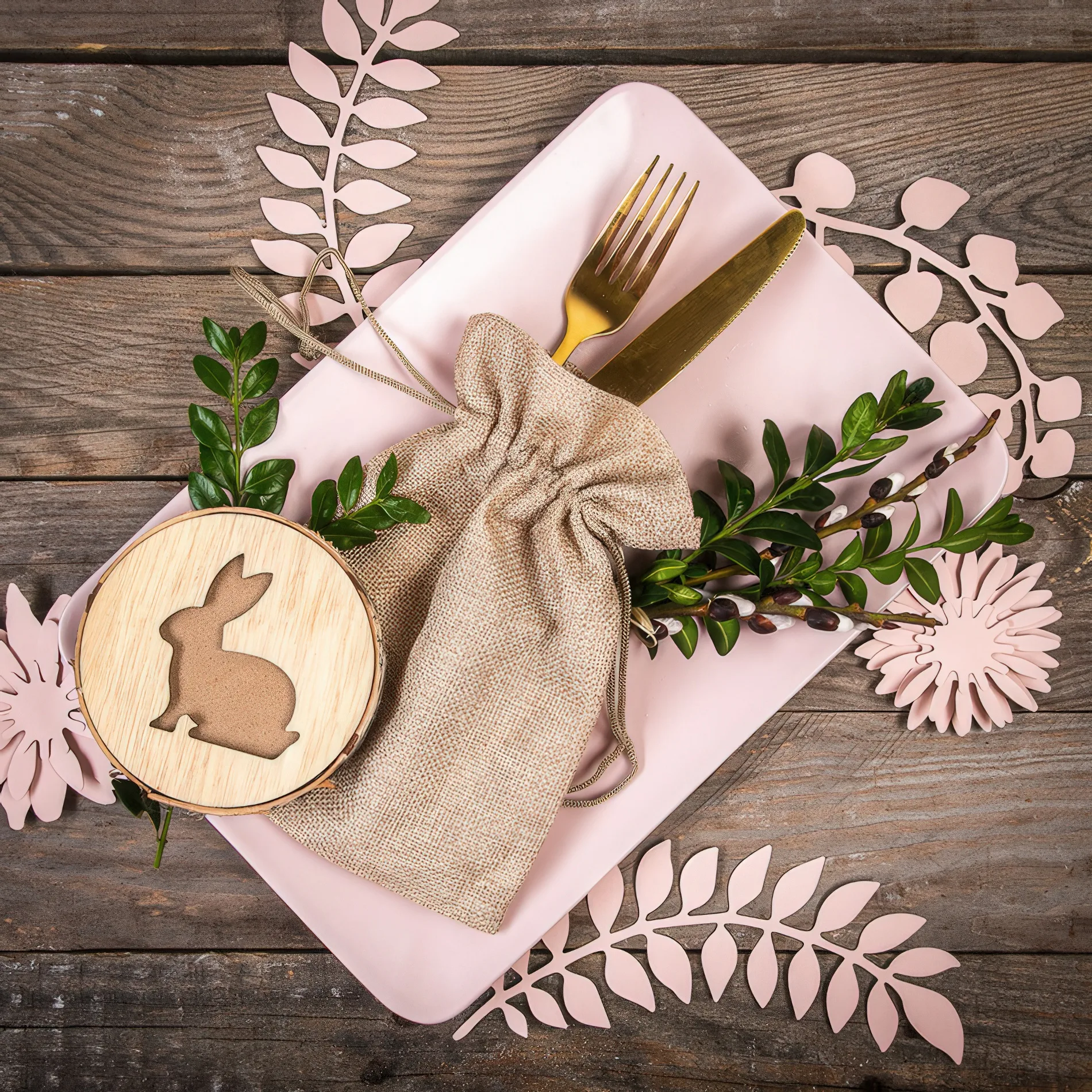 1 ud. Bolsa de yute con dimensiones 13 x 18 cm- Pascua + huevo de Pascua de madera con orejas