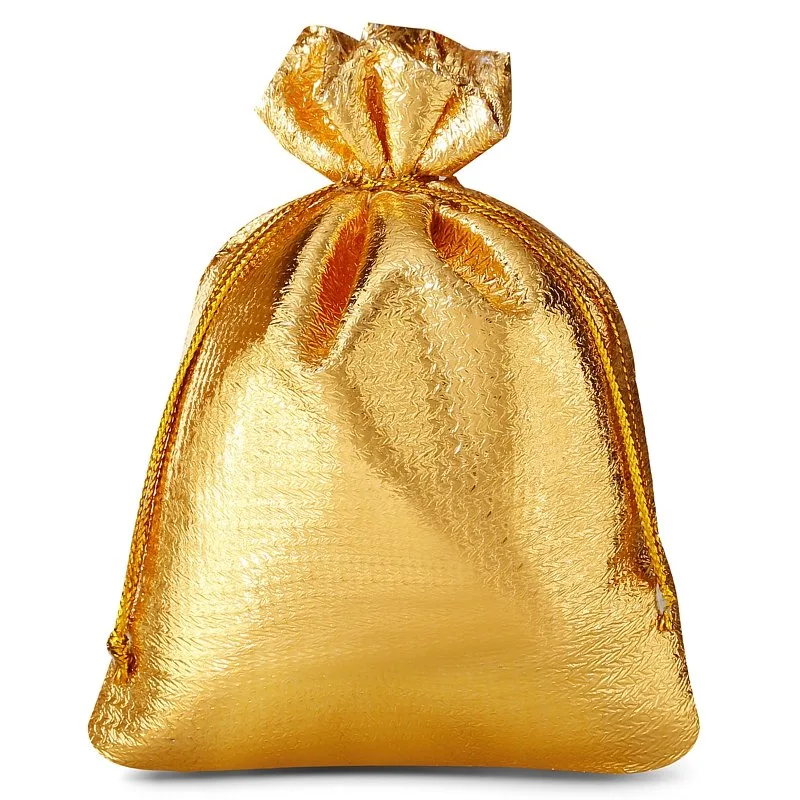Un paquete extraordinario de 10 bolsas metalizadas en el color dorado de dimensiones 10 x 13 cm.