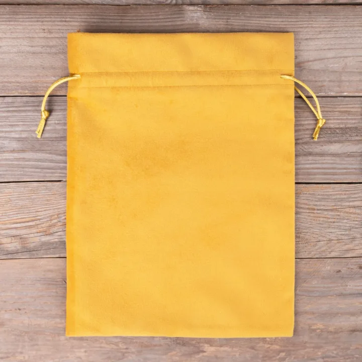Aquí puedes comprar un set de hermosas y duraderas bolsas de terciopelodorado miel. Las bolsas miden 22 x 30 cm y destacan por su aspecto moderno y su tejido suave y agradable al tacto. El paquete contiene 5 bolsas con cordón.