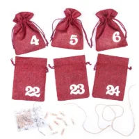 1 ud. Calendario de Adviento bolsas de yute 13 x 18 cm: granate + números blancos