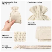 10 uds. Bolsitas estilo lino 13 x 18 cm – natural