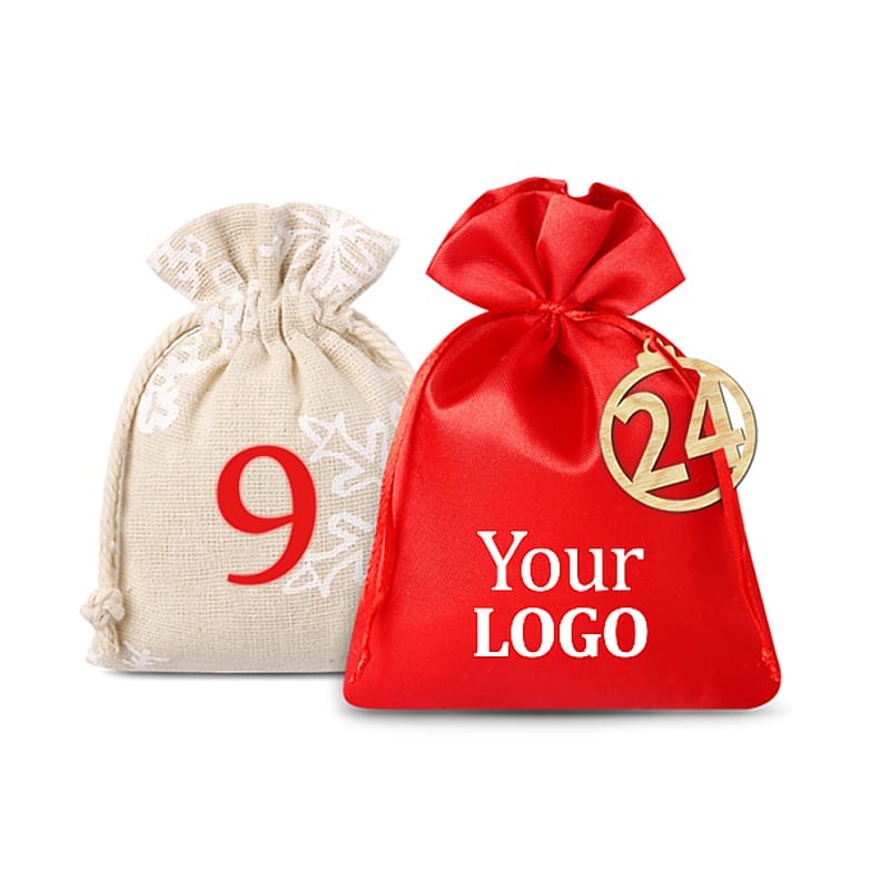 1 ud. Bolsas de terciopelo con calendario de adviento, tamaño 15 x 20 cm - rojo y blanco + números blancos y rojos
